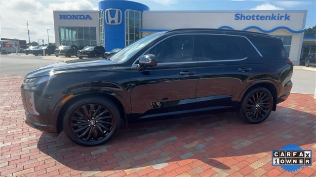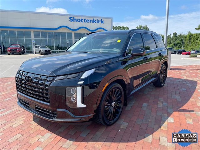 CARFAX One-Owner. 2025 Hyundai Palisade Calligraphy Night Edition Calligraphy Night Edition Abyss Black Pearl 4D Sport Utility V6 8-Speed Automatic with SHIFTRONIC AWD This vehicle comes well equipped with Option Group 01, 12 Speakers, 3rd row seats: split-bench, 4-Wheel Disc Brakes, ABS brakes, Air Conditioning, Alloy wheels, AM/FM radio: SiriusXM, Apple CarPlay & Android Auto, Auto High-beam Headlights, Auto-dimming door mirrors, Auto-dimming Rear-View mirror, Auto-leveling suspension, Automatic temperature control, Brake assist, Bumpers: body-color, Cargo Net, Cargo Tray, Carpeted Floor Mats, Compass, Delay-off headlights, Driver door bin, Driver vanity mirror, Dual front impact airbags, Dual front side impact airbags, Electronic Stability Control, Emergency communication system, Exterior Parking Camera Rear, First Aid Kit, Four wheel independent suspension, Front anti-roll bar, Front Bucket Seats, Front Center Armrest, Front dual zone A/C, Front reading lights, Fully automatic headlights, Garage door transmitter: HomeLink, harman/kardon® Speakers, Heads-Up Display, Heated & Ventilated Front Bucket Seats, Heated door mirrors, Heated front seats, Heated rear seats, Heated steering wheel, Illuminated entry, Knee airbag, Leather steering wheel, Low tire pressure warning, Memory seat, Microfiber Suede Seat Trim, Navigation System, Occupant sensing airbag, Outside temperature display, Overhead airbag, Overhead console, Panic alarm, Passenger door bin, Passenger vanity mirror, Power door mirrors, Power driver seat, Power Liftgate, Power moonroof, Power passenger seat, Power steering, Power windows, Radio data system, Radio: AM/FM/MP3 Premium Audio System, Rain sensing wipers, Rear air conditioning, Rear anti-roll bar, Rear audio controls, Rear reading lights, Rear side impact airbag, Rear window defroster, Rear window wiper, Reclining 3rd row seat, Remote keyless entry, Roof rack, Security system, Speed control, Speed-sensing steering, Split folding rear seat, Spoiler, Steering wheel mounted audio controls, Tachometer, Telescoping steering wheel, Tilt steering wheel, Traction control, Trip computer, Turn signal indicator mirrors, Variably intermittent wipers, Ventilated front seats, Ventilated rear seats, Wheel Locks, and Wheels: 20" x 7.5J Black Liquid Paint Alloy.Priced below KBB Fair Purchase Price!Shottenkirk Honda of Huntsville is proud to serve Huntsville, Jasper, Birmingham, Gadsden, Anniston, and Florence. We are here to help with all your sales, parts, and service needs. Advertised Price is plus tax, tag and documentation fee. See dealer for details.