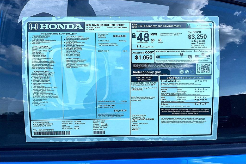2026 Honda Civic Hybrid Sport FWD eCVT 2.0L I4 DOHC 16V
