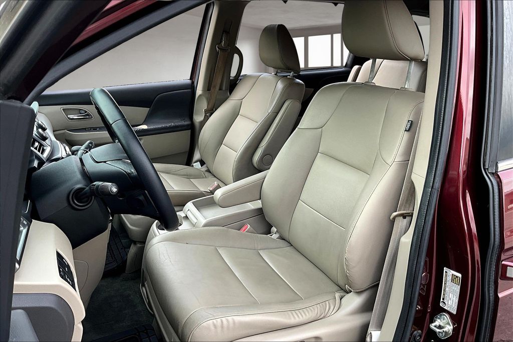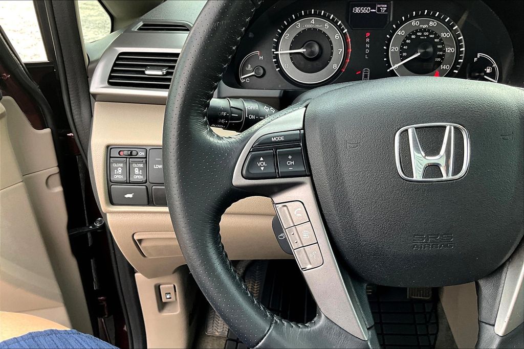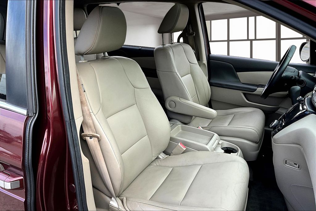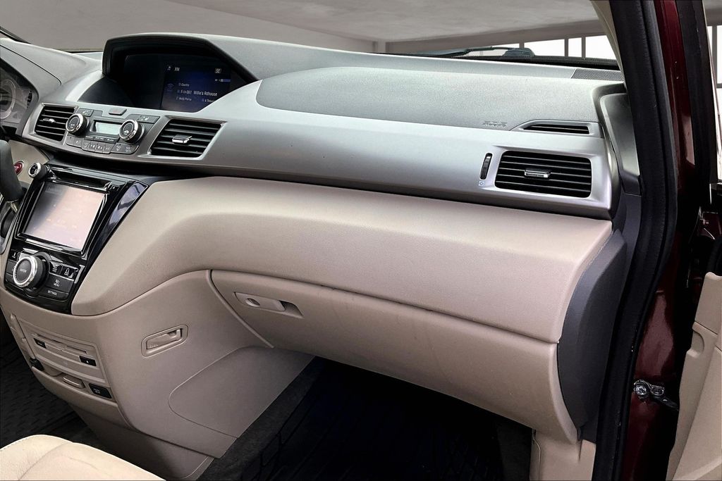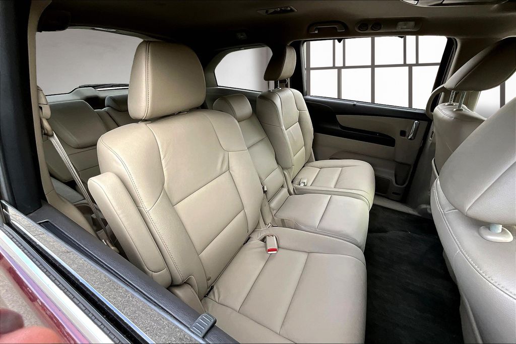 Odyssey EX-L, 3.5L V6 SOHC i-VTEC 24V, 6-Speed Automatic, FWD, Red, Beige w/Leather Seat Trim, 17" x 7" Alloy Wheels, 3rd row seats: split-bench, 4-Wheel Disc Brakes, AM/FM radio: SiriusXM, Auto-dimming Rear-View mirror, Automatic temperature control, CD player, Exterior Parking Camera Rear, Four wheel independent suspension, Front dual zone A/C, Fully automatic headlights, Garage door transmitter: HomeLink, Heated door mirrors, Heated Front Bucket Seats, Leather Seat Trim, Leather steering wheel, Outside temperature display, Power door mirrors, Power Liftgate, Power moonroof, Rear air conditioning, Rear window wiper, Reclining 3rd row seat, Remote keyless entry, Spoiler, Telescoping steering wheel.
