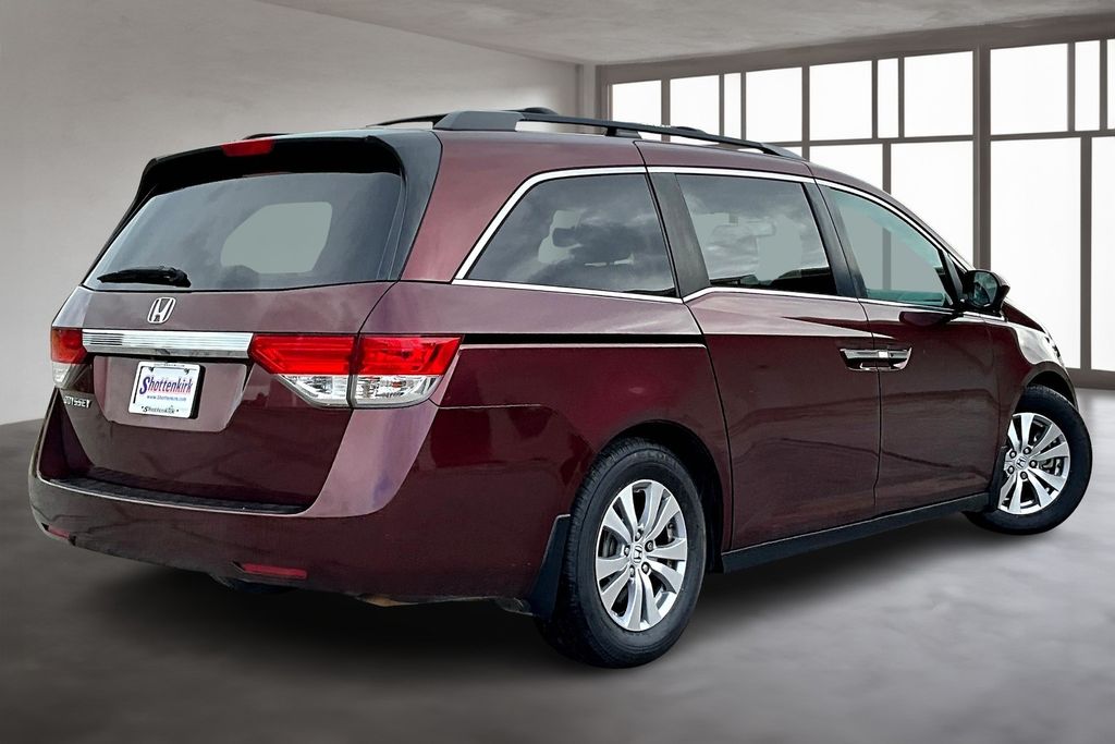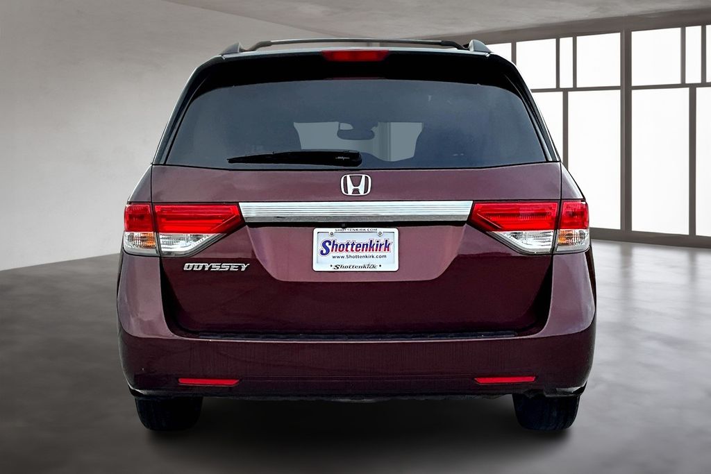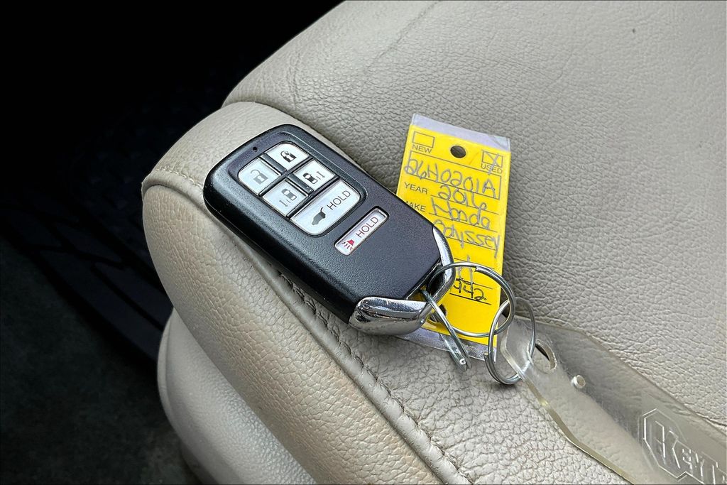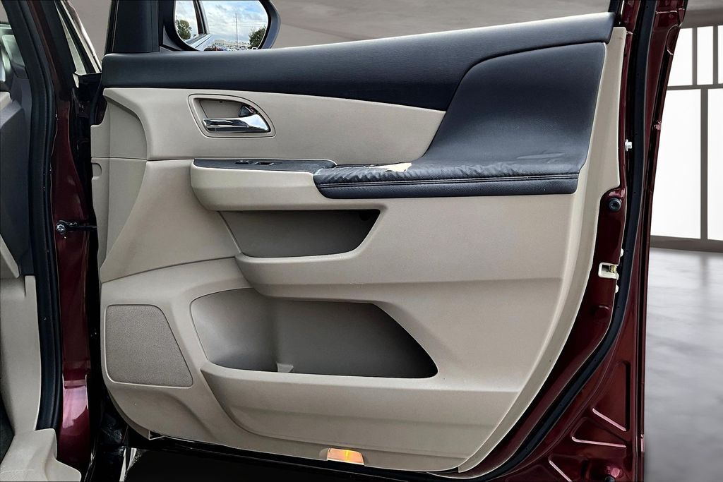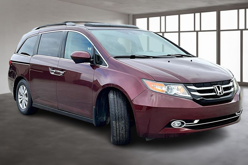 Odyssey EX-L, 3.5L V6 SOHC i-VTEC 24V, 6-Speed Automatic, FWD, Red, Beige w/Leather Seat Trim, 17" x 7" Alloy Wheels, 3rd row seats: split-bench, 4-Wheel Disc Brakes, AM/FM radio: SiriusXM, Auto-dimming Rear-View mirror, Automatic temperature control, CD player, Exterior Parking Camera Rear, Four wheel independent suspension, Front dual zone A/C, Fully automatic headlights, Garage door transmitter: HomeLink, Heated door mirrors, Heated Front Bucket Seats, Leather Seat Trim, Leather steering wheel, Outside temperature display, Power door mirrors, Power Liftgate, Power moonroof, Rear air conditioning, Rear window wiper, Reclining 3rd row seat, Remote keyless entry, Spoiler, Telescoping steering wheel.