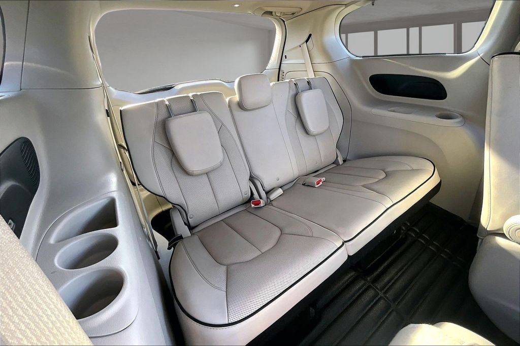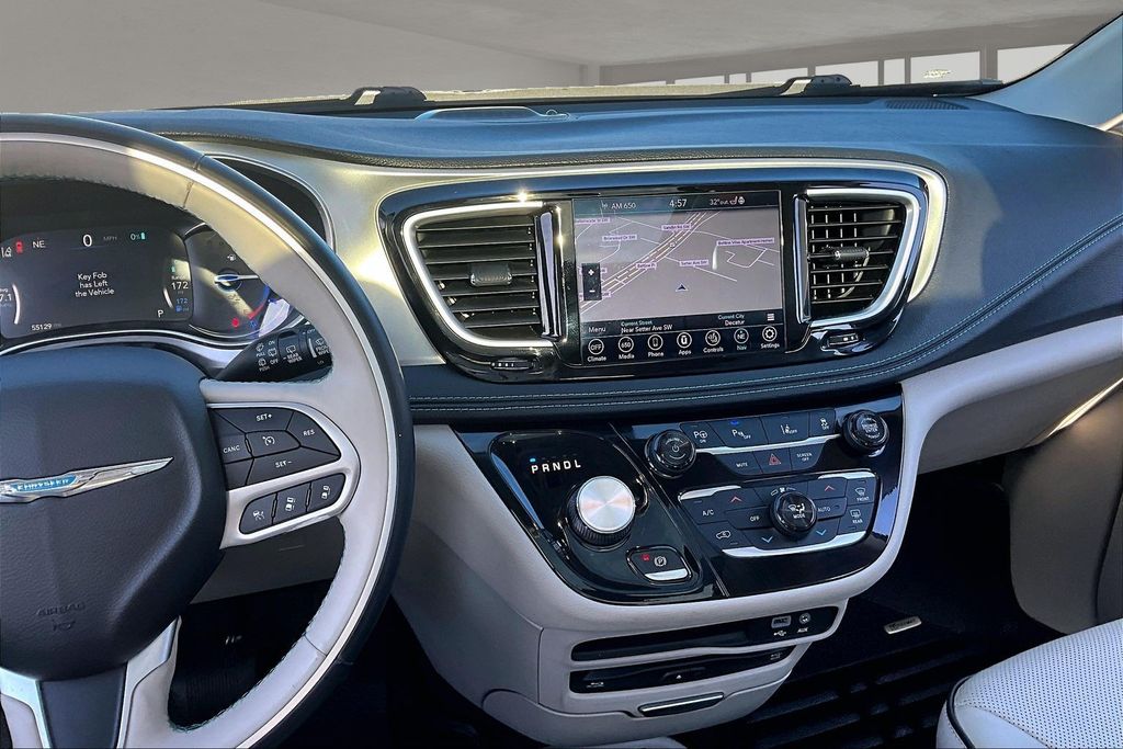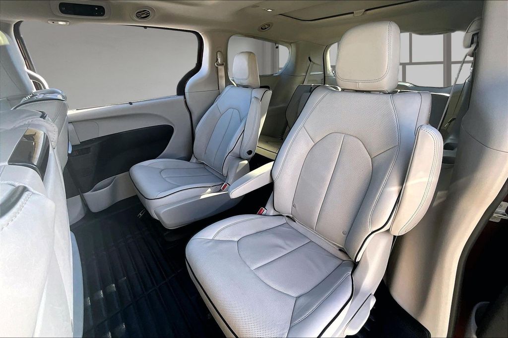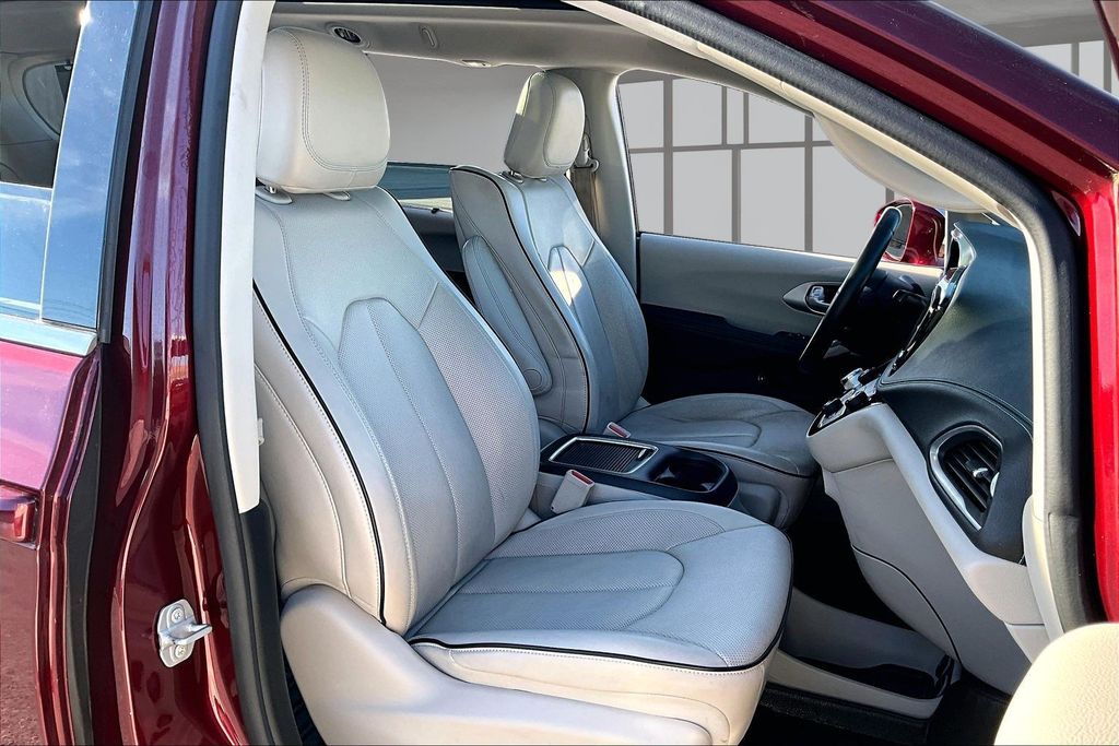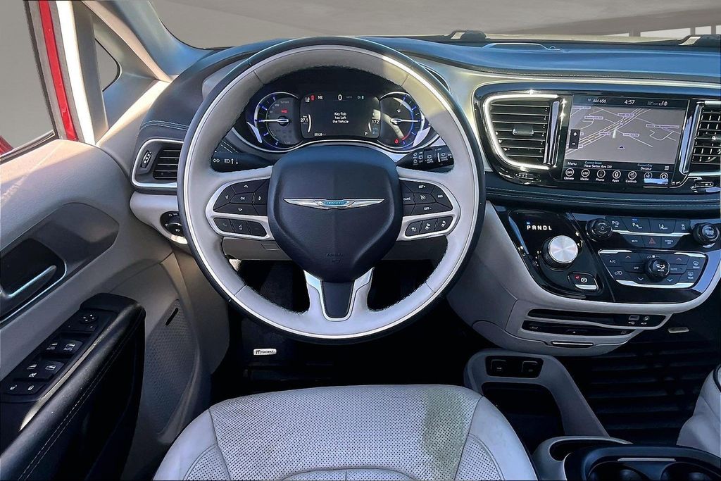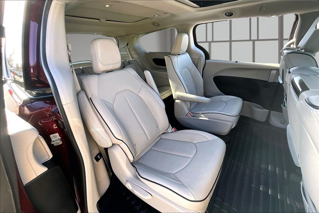 3rd Row Seating, Apple CarPlay, Android Auto, Adaptive Cruise Control, Back Up Camera, Heated Seats, Heated Steering Wheel, Leather Interior, Lane Departure, Navigation, Power Drivers Seat, Parking Sensors, Remote Start, Sunroof, Ventilated Seats, Rear Entertainment, Pacifica Hybrid Limited, 3.6L V6, CVT, Velvet Red Pearlcoat, Black Leather, 115V Auxiliary Power Outlet, 20 harman/kardon Speakers, 20 Speaker harman/kardon Sound Group, 3-Channel Video Remote Control, 3-Channel Wireless Headphones (RF), 360 Surround View Camera System, 3rd row seats: split-bench, 760 Watt Amplifier, Adaptive Cruise Control w/Stop & Go, Advanced Brake Assist, Advanced SafetyTec Group, Apple CarPlay/Android Auto, Auto-dimming Rear-View mirror, Automatic High Beam Headlamp Control, Automatic temperature control, Blu-Ray/DVD Player/USB Port, Brake assist, Front dual zone A/C, Front fog lights, Full Speed Forward Collision Warning Plus, Garage door transmitter, Heated front seats, Heated steering wheel, High Definition Multimedia Interface, Lane Departure Warning Plus, Navigation System, Parallel & Perpendicular Park Assist w/Stop, ParkSense Front/Rear Park Assist w/Stop, ParkView Rear Back-Up Camera, Power door mirrors, Power driver seat, Power Liftgate, Power Open/Close Shade, Quick Order Package 2EC, Rain Sensitive Windshield Wipers, Reclining 3rd row seat, Remote keyless entry, Seatback Video Screens, Spoiler, Telescoping steering wheel, Tilt steering wheel, Tri Pane Panoramic Sunroof, Uconnect Theater w/Streaming, Ventilated front seats, Video USB Port.
