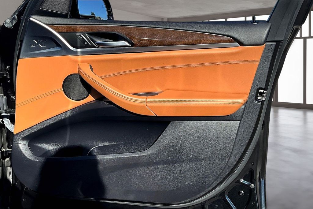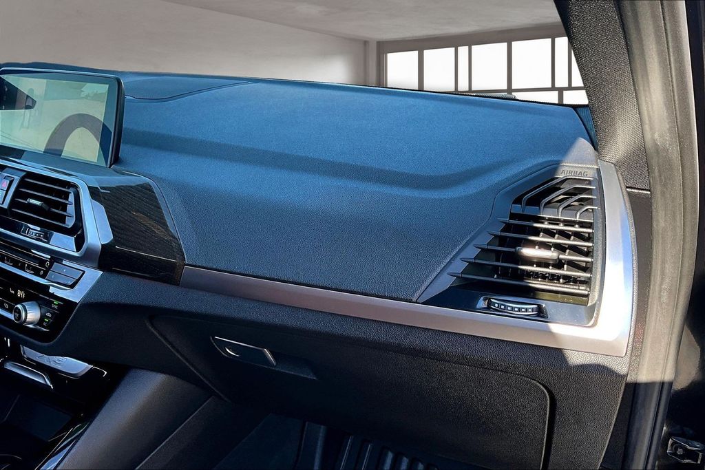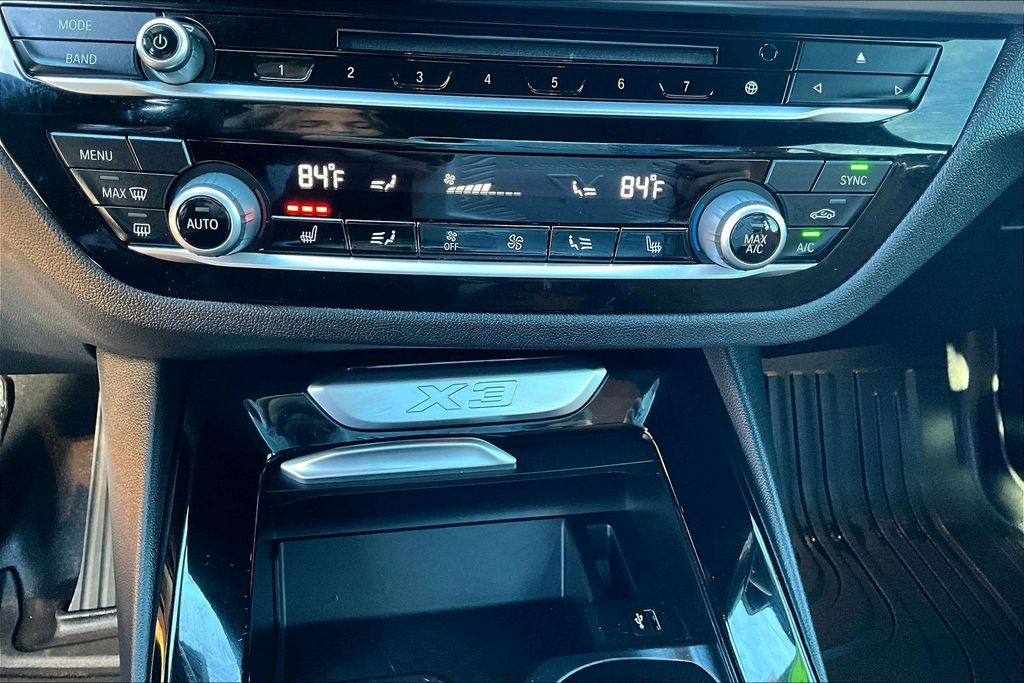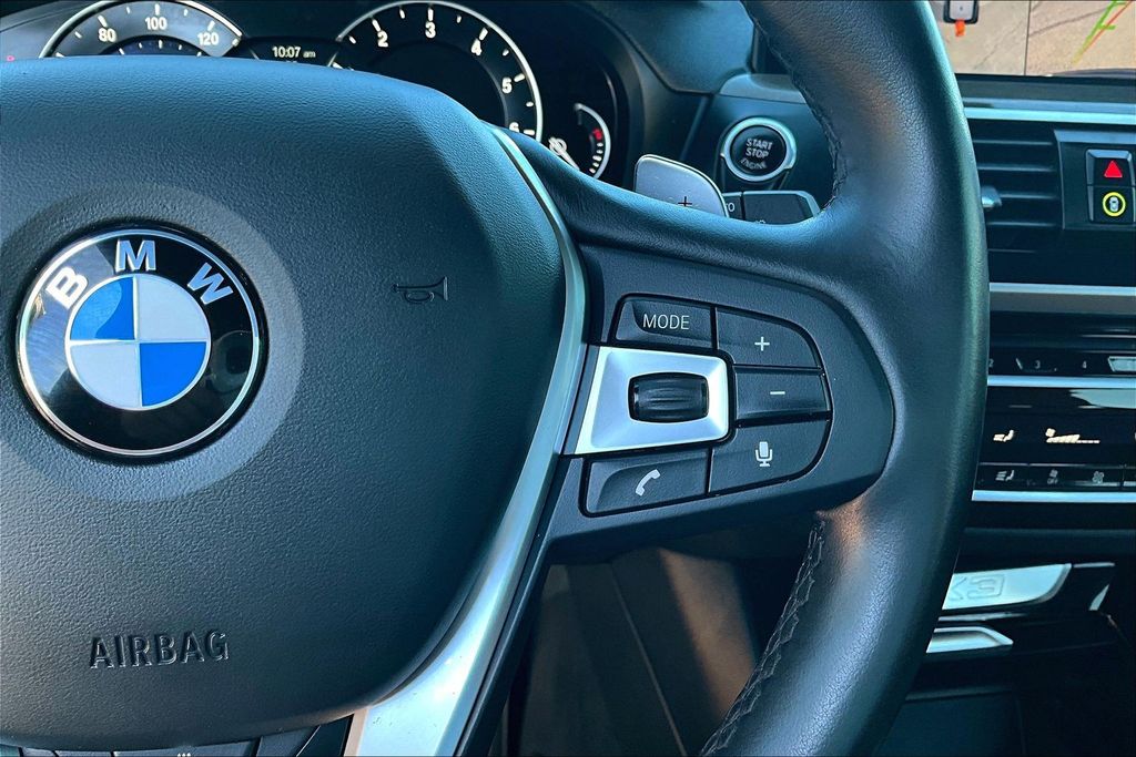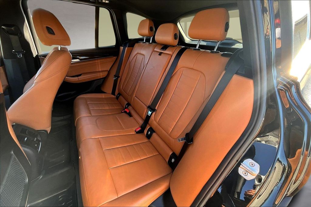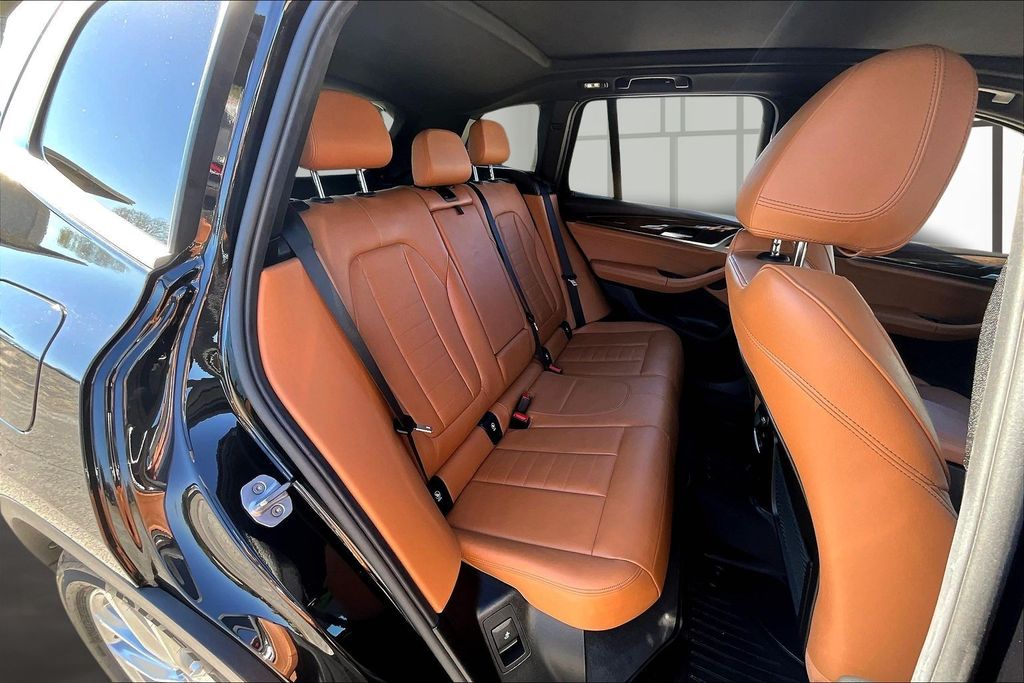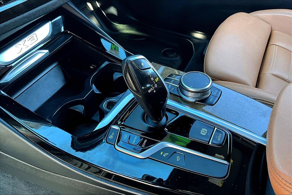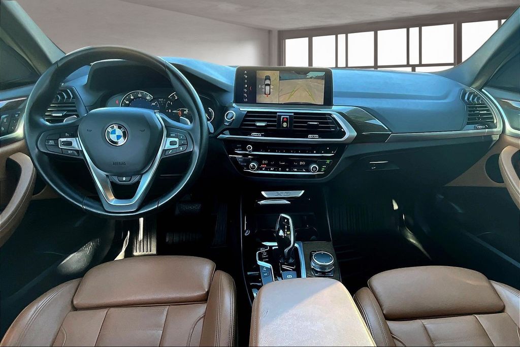 X3 sDrive30i, 2.0L I4 TwinPower Turbo, 8-Speed Automatic, RWD, Black Sapphire Metallic, Cognac Leather, 12 Speakers, 4-Wheel Disc Brakes, Active Blind Spot Detection, Active Driving Assistant, Active Park Distance Control, Advanced Real-Time Traffic Information, Ambient Lighting, Apple CarPlay Compatibility, Auto-dimming door mirrors, Auto-dimming Rear-View mirror, Automatic temperature control, Comfort Access Keyless Entry, Convenience Package, Driving Assistance Package, Electronic Stability Control, Emergency communication system: BMW Assist eCall, Four wheel independent suspension, Front dual zone A/C, Front fog lights, Garage door transmitter, Genuine wood dashboard insert, Hands-Free Bluetooth & USB Audio Connection, Head-Up Display, Heated Front Seats, Heated Steering Wheel, Hi-Fi Sound System, Lane Departure Warning System, LED Headlights w/Cornering Lights, Lumbar Support, Memory seat, Navigation System, Occupant sensing airbag, Outside temperature display, Panoramic Moonroof, Parking Assistance Package, Parking Assistant Plus, Power door mirrors, Power driver seat, Power Front Seats, Power Liftgate, Power passenger seat, Premium Package, Radio: AM/FM Stereo w/HD, Rain sensing wipers, Rear-View Camera, Remote keyless entry, Remote Services, SensaTec Upholstery, SiriusXM Satellite Radio, Spoiler, Sport Leather Steering Wheel, Surround View w/3D View, Telescoping steering wheel, Turn signal indicator mirrors, Wheels: 19" x 7.5" V-Spoke (Style 692).