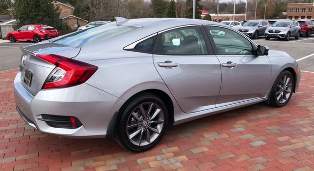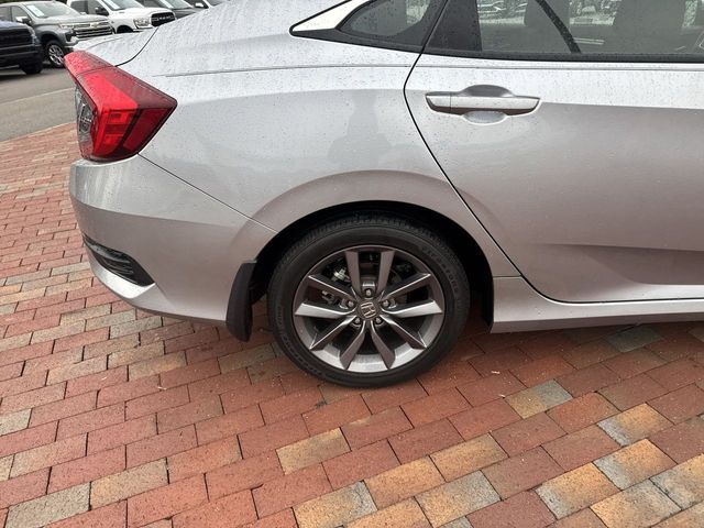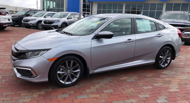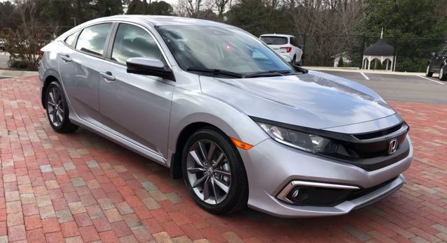 Recent Arrival! 2019 Honda Civic EX EX Silver 4D Sedan 1.5L I-4 DI DOHC Turbocharged CVT FWD This vehicle comes well equipped with 17" Alloy Wheels, 4-Wheel Disc Brakes, 8 Speakers, ABS brakes, Air Conditioning, Alloy wheels, AM/FM radio: XM, Apple CarPlay/Android Auto, Auto High-beam Headlights, Automatic temperature control, Brake assist, Bumpers: body-color, Cloth Seat Trim, Delay-off headlights, Driver door bin, Driver vanity mirror, Dual front impact airbags, Dual front side impact airbags, Electronic Stability Control, Emergency communication system: HondaLink, Exterior Parking Camera Rear, Forward collision: Collision Mitigation Braking System (CMBS) + FCW mitigation, Four wheel independent suspension, Front anti-roll bar, Front Bucket Seats, Front Center Armrest, Front dual zone A/C, Front fog lights, Front reading lights, Fully automatic headlights, Heated door mirrors, Heated Front Bucket Seats, Heated front seats, Illuminated entry, Lane departure: Lane Keeping Assist System (LKAS) active, Leather Shift Knob, Low tire pressure warning, Occupant sensing airbag, Outside temperature display, Overhead airbag, Overhead console, Panic alarm, Passenger door bin, Passenger vanity mirror, Power door mirrors, Power driver seat, Power moonroof, Power steering, Power windows, Radio data system, Radio: 180-Watt AM/FM/HD/SiriusXM Audio System, Rear anti-roll bar, Rear seat center armrest, Rear window defroster, Remote keyless entry, Security system, Speed control, Speed-sensing steering, Speed-Sensitive Wipers, Split folding rear seat, Spoiler, Steering wheel mounted audio controls, Tachometer, Telescoping steering wheel, Tilt steering wheel, Traction control, Trip computer, and Variably intermittent wipers.