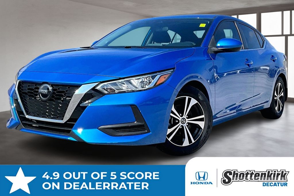 Apple CarPlay, Android Auto, Adaptive Cruise Control, Parking Sensors, Sentra SV, 4D Sedan, 2.0L DOHC, Electric Blue Metallic, Charcoal Cloth, AM/FM radio: SiriusXM, Auto High-beam Headlights, Automatic temperature control, Blind Spot Warning, Carpeted Floor Mats w/Trunk Mat, Front dual zone A/C, Fully automatic headlights, Heated door mirrors, NissanConnect featuring Apple CarPlay and Android Auto, Power door mirrors, Rear Parking Sensors, Remote keyless entry, Telescoping steering wheel, Tilt steering wheel, Upgraded Cloth Seat Trim.