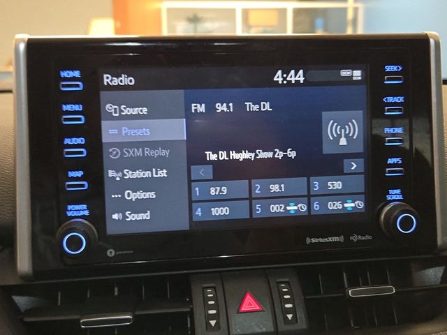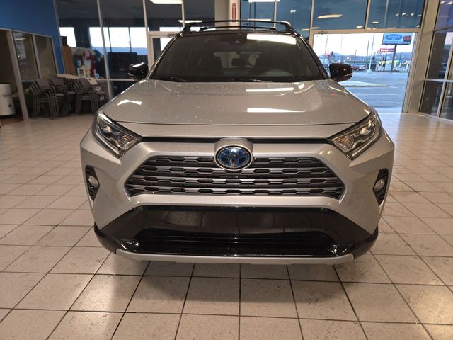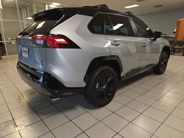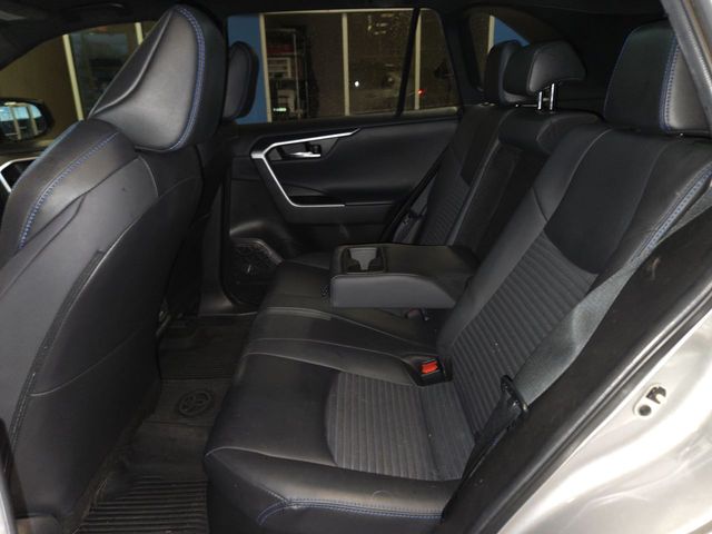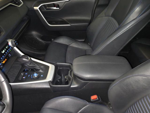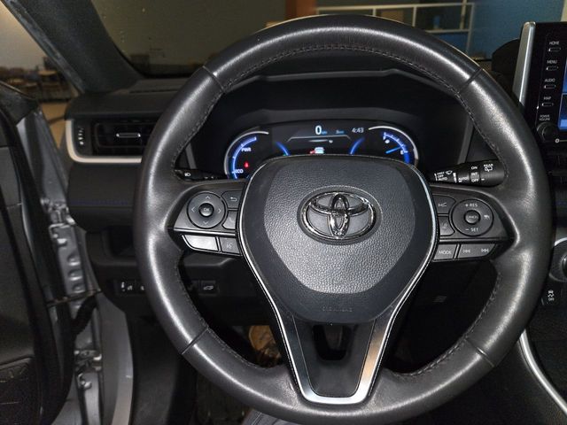 Silver Sky Metallic/Midnight Black Metallic 2021 Toyota RAV4 Hybrid XSE AWD eCVT 2.5L 4-Cylinder 3 Spoke Leather Steering Wheel, 4-Wheel Disc Brakes, 6 Speakers, ABS brakes, Air Conditioning, Alloy wheels, AM/FM radio: SiriusXM, Anti-Theft System, Apple CarPlay/Android Auto, Auto High-beam Headlights, Auto-dimming Rear-View mirror, Automatic temperature control, Axle Ratio: TBD, Brake assist, Bumpers: body-color, Delay-off headlights, Driver door bin, Driver vanity mirror, Dual front impact airbags, Dual front side impact airbags, Electronic Stability Control, Emergency communication system: Safety Connect with 1-year trial, Four wheel independent suspension, Front anti-roll bar, Front Bucket Seats, Front Center Armrest, Front Door Smart Key System w/Push Button Start, Front dual zone A/C, Front Fog & Driving Lamp, Front fog lights, Front reading lights, Front Seat Heating, Fully automatic headlights, Garage door transmitter: HomeLink, Heated door mirrors, Heated Front Seats, Heated front seats, Illuminated entry, Knee airbag, Lane Departure Warning System, Leather Shift Knob, Low tire pressure warning, Occupant sensing airbag, Outside temperature display, Overhead airbag, Overhead console, Panic alarm, Passenger door bin, Passenger vanity mirror, Power door mirrors, Power driver seat, Power Liftgate, Power moonroof, Power steering, Power windows, Radio data system, Radio: Audio Plus, Rear anti-roll bar, Rear seat center armrest, Rear window defroster, Rear window wiper, Remote keyless entry, Roof rack: rails only, Security system, SofTex Seat Trim (EC), Speed control, Speed-sensing steering, Split folding rear seat, Spoiler, Steering wheel mounted audio controls, Telescoping steering wheel, Tilt steering wheel, Traction control, Trip computer, Turn signal indicator mirrors, Variably intermittent wipers, Wheels: 18" x 7.0J Black-Painted Aluminum Alloy.
