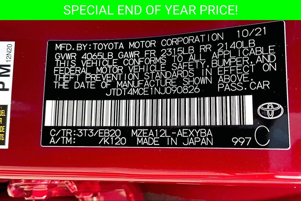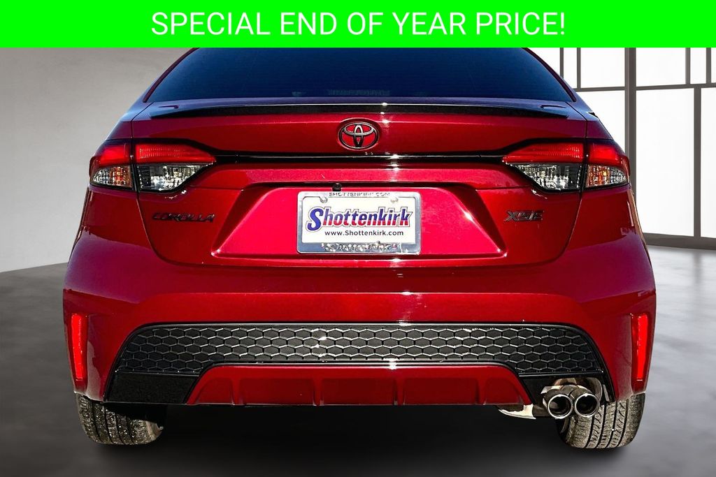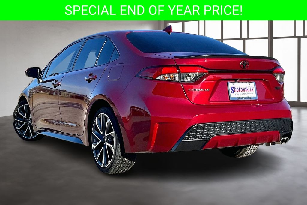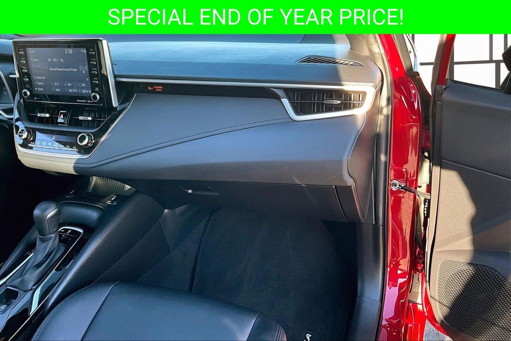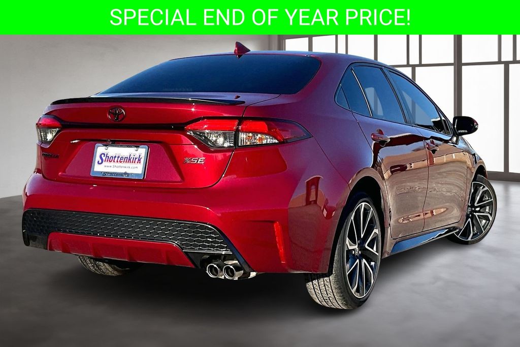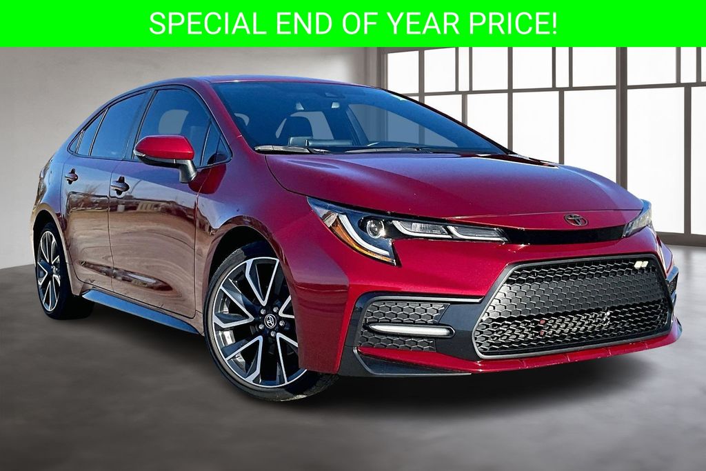 Corolla XSE, 4D Sedan, 2.0L I4 DOHC 16V, CVT, FWD, Red, ABS brakes, Active Cruise Control, Alloy wheels, AM/FM radio: SiriusXM, Apple CarPlay/Android Auto, Automatic temperature control, Electronic Stability Control, Emergency communication system: Safety Connect with 1-year trial, Exterior Parking Camera Rear, Fully automatic headlights, Heated door mirrors, Heated front seats, Heated Front Sport Seats, Illuminated entry, Low tire pressure warning, Outside temperature display, Power door mirrors, Power driver seat, Power moonroof, Radio data system, Rear window defroster, Remote keyless entry, SofTex Leather Seat Trim, Telescoping steering wheel, Tilt steering wheel, Traction control, Turn signal indicator mirrors.