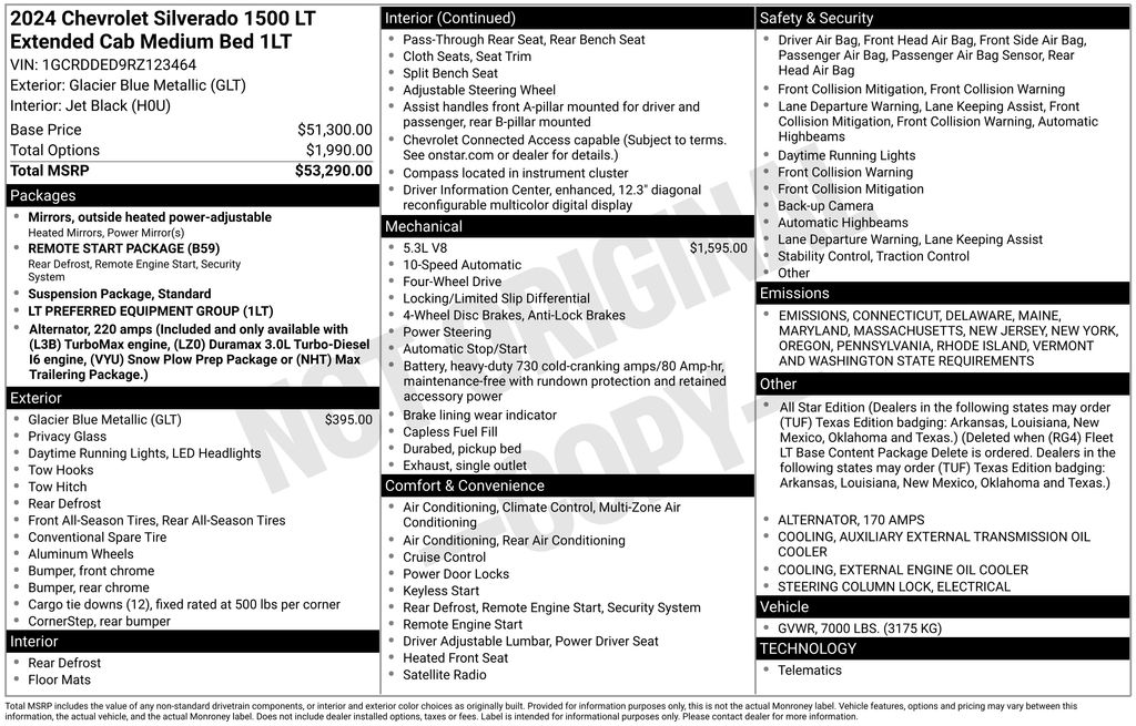 CARFAX One-Owner. Clean CARFAX. Priced below KBB Fair Purchase Price!4WDSilverado 1500 LT LT1, EcoTec3 5.3L V8, 10-Speed Automatic, 4WD, Glacier Blue Metallic, Black Cloth, 10-Way Power Driver Seat w/Lumbar, 12.3" Multicolor Reconfigurable Digital Display, 120-Volt Bed Mounted Power Outlet, 120-Volt Interior Power Outlet, 220 Amp Alternator, 4-Wheel Disc Brakes, All-Star Edition, AM/FM radio: SiriusXM with 360L, Auto High-beam Headlights, Auto-Locking Rear Differential, Automatic temperature control, Auxiliary External Transmission Oil Cooler, Chevrolet Connected Access Capable, Chrome Mirror Caps, Cloth Seat Trim, Color-Keyed Carpeting Floor Covering, Convenience Package, Deep-Tinted Glass, Dual Rear USB Ports (Charge Only), Dual-Zone Automatic Climate Control, Electric Rear-Window Defogger, Electrical Steering Column Lock, Electronic Cruise Control, External Engine Oil Cooler, EZ Lift Power Lock & Release Tailgate, Following Distance Indicator, Forward Collision Alert, Front Frame-Mounted Black Recovery Hooks, Front Rubberized Vinyl Floor Mats, Front wheel independent suspension, Fully automatic headlights, HD Rear Vision Camera, Heated door mirrors, Heated Driver & Front Outboard Passenger Seats, Heated Power-Adjustable Outside Mirrors, Heated Steering Wheel, Hitch Guidance, Inside Rear-View Mirror w/Tilt, Keyless Open & Start, Lane Keep Assist w/Lane Departure Warning, LED Cargo Area Lighting, OnStar & Chevrolet Connected Services Capable, Outside temperature display, Preferred Equipment Group 1LT, Radio: Chevrolet Infotainment 3 Premium System, Rear 60/40 Folding Bench Seat (Folds Up), Rear Rubberized-Vinyl Floor Mats, Rear step bumper, Remote keyless entry, Remote Start Package, Remote Vehicle Starter System, SiriusXM w/360L, Standard Suspension Package, Standard Tailgate, Steering Wheel Audio Controls, Telescoping steering wheel, Theft Deterrent System (Unauthorized Entry), Trailering Package, Wheels: 17" x 8" Bright Silver Painted Aluminum, Wi-Fi Hot Spot Capable, Wrapped Steering Wheel.2024 Chevrolet Silverado 1500 Glacier Blue Metallic EcoTec3 5.3L V8 10-Speed Automatic 4D Extended Cab LTThank you for making your way to Shottenkirk Honda Decatur, your certified Honda dealer serving drivers throughout Decatur, Huntsville, Madison, Athens, Priceville, Hartselle, Danville, Cullman, Vinemont, Moulton, Trinity, Florence, Muscle Shoals, Harvest, Somerville, Arab, New Hope, Gurley, Eva, Guntersville, Scottsboro, Gadsden, Boaz, Owens Cross Roads, Hazel Green, Elkmont, Meridianville, and the surrounding areas. At our dealership, you’ll find a great selection of new Hondas for sale, as well as a carefully inspected lineup of pre-owned vehicles. We also have a well-connected finance center run by a qualified team of finance experts, who can help you get the right loan or lease in a quick, easy, and transparent manner.